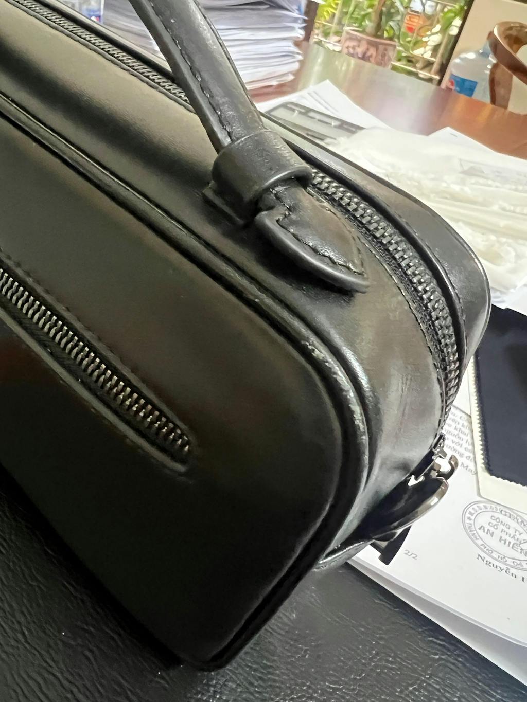 Qua ảnh anh gửi, phần trầy xước nằm ở lớp sơn cạnh chứ không phải da túi. Phần sơn cạnh này được hãng bảo dưỡng trọn đời và miễn phí.