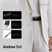 Lấy cảm hứng từ phong cách hiện đại, ANDREW BELT với thiết kế mặt khóa kim bằng chrome sáng bóng dễ dàng phù hợp mọi phong cách thời trang. Sự lịch lãm, sang trọng của ANDREW BELT đến từ quy trình chế tác thủ công da bò Mastrotto nghiêm ngặt, cùng những đương cắt may chỉn chu.