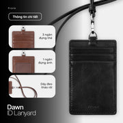 DAWN ID Lanyard được hoàn thiện từ da thật cao cấp, kết hợp giữa mặt trước với 3 ngăn đựng thẻ và mặt sau tối giản với ô nhựa đựng ảnh.