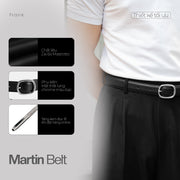 Lấy cảm hứng từ phong cách hiện đại, MARTIN BELT với thiết kế mặt khóa kim bằng chrome sáng bóng dễ dàng phù hợp mọi phong cách thời trang. Sự lịch lãm, sang trọng của MARTIN BELT đến từ quy trình chế tác thủ công da bò Mastrotto nghiêm ngặt, cùng những đương cắt may chỉn chu.