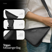Trigon Messenger Bag có form dáng tam giác cùng các điểm xuyết kim loại nổi bật trên nền da bò đen Mastrotto. Dễ phối, sang trọng và không thể lỗi thời, Messenger bag có thể bắt nhịp với bất kỳ cá tính hay outfit nào.